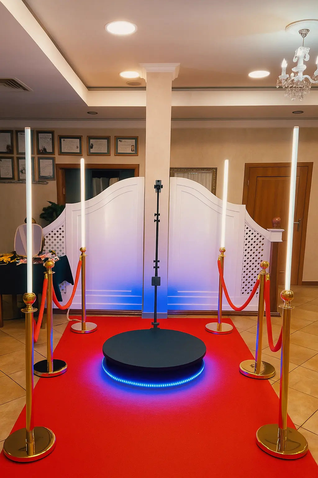 Fotobudka 360 z czerwonym dywanem,