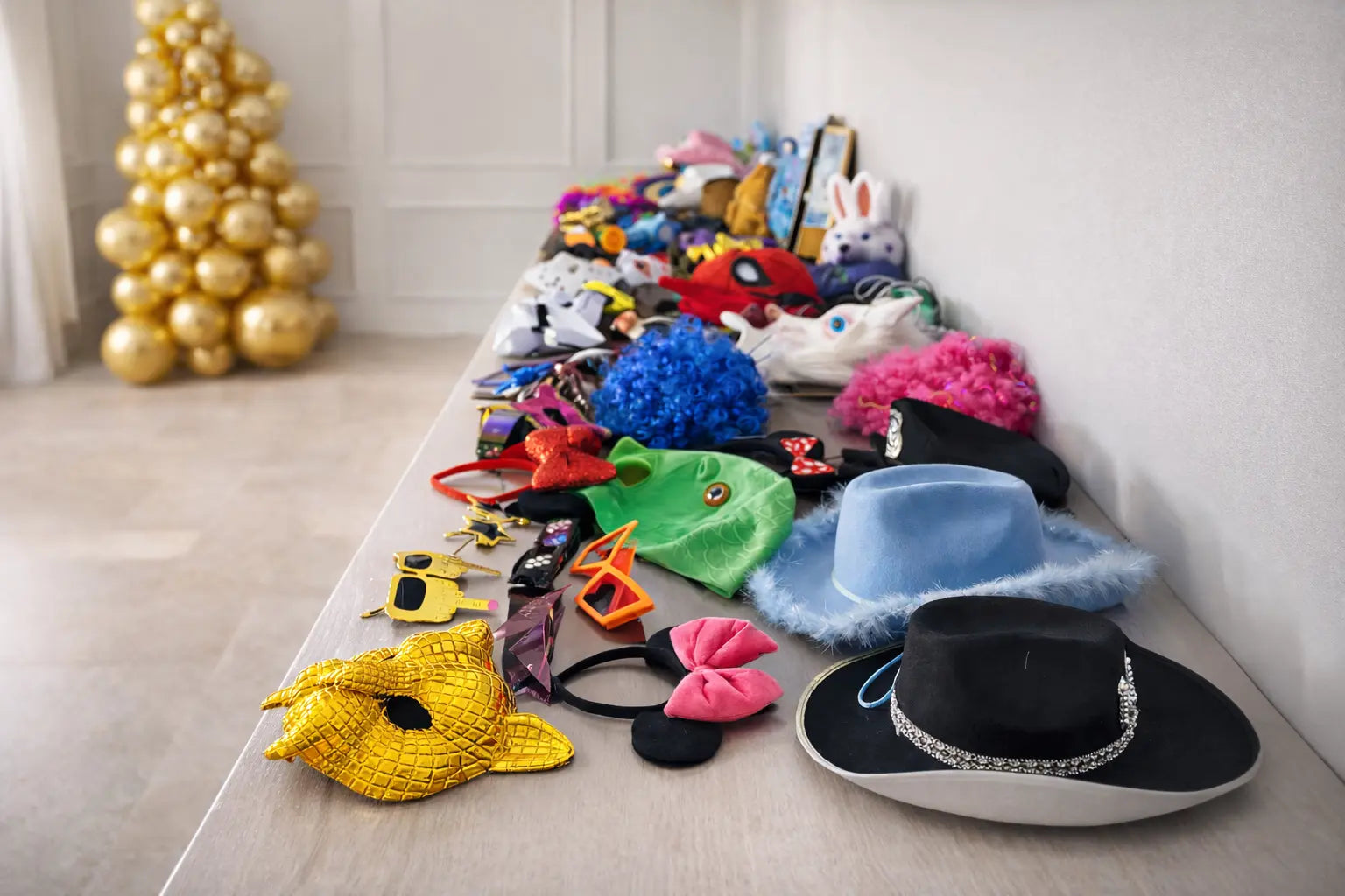 • Duży wybór zabawnych rekwizytów (okulary, kapelusze, peruki, maski itd.)
